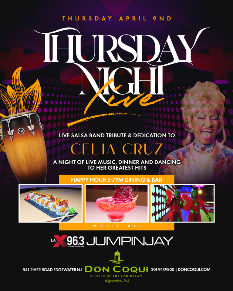 Don Coqui Edgewater features three bars with A Live DJ! serving amazing cocktails. Friday & Saturday Night Join Us for Dancing in Our Lounge with Free Admission. For Bottle Service Call 201-947-9800.